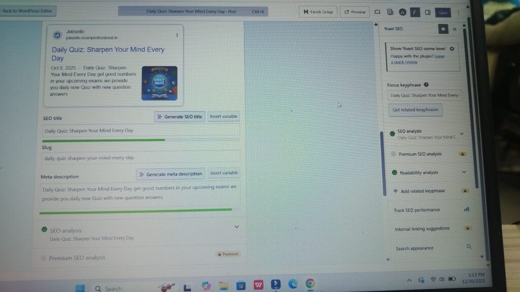 In today’s fast-paced world, keeping your mind active and engaged is more important than ever. One of the most effective and enjoyable ways to do this is by taking a Daily Quiz: Sharpen Your Mind Every Day. A simple habit like answering questions every day can improve your knowledge, boost your memory, and even help you prepare for competitive exams. Whether you are a student, a professional, or someone who enjoys mental challenges, a Daily Quiz: Sharpen Your Mind Every Daily Quiz ( Daily Quiz )offers something for everyone.